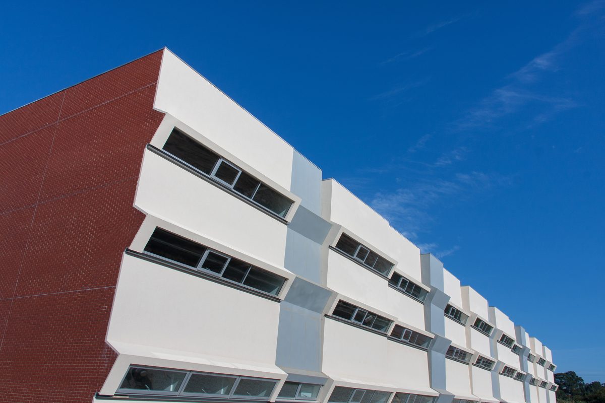 The building is located on the University of Aveiro Campus and is intended for multidisciplinary use, including auditoriums, classrooms, and intensive-use workrooms.